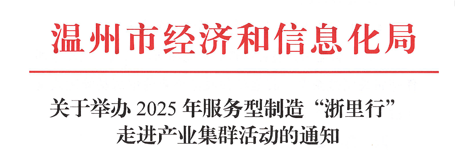 关于温州开展2025年服务型制造“浙里行”走进产业集群活动的通知
