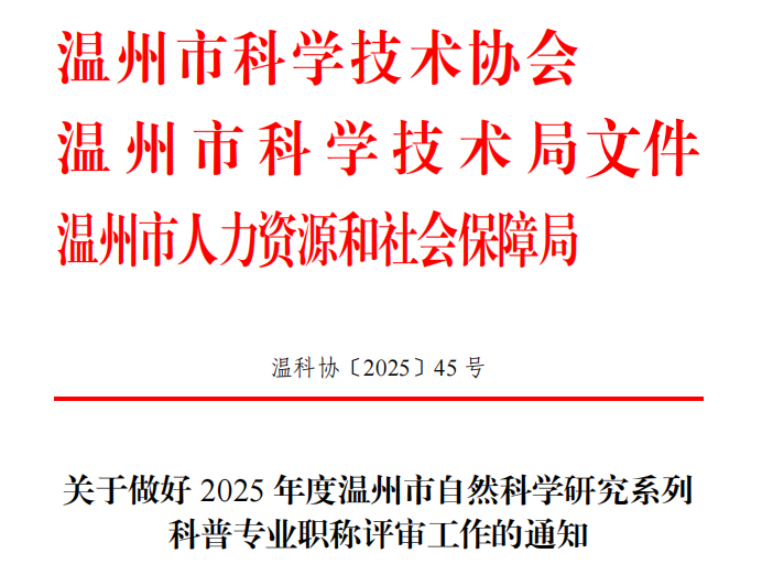 关于做好2025年度温州市自然科学研究系列科普专业职称评审工作的通知