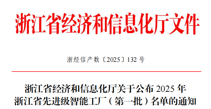 浙江省经济和信息化厅关于公布2025年浙江省先进级智能工厂(第一批)名单的通知
